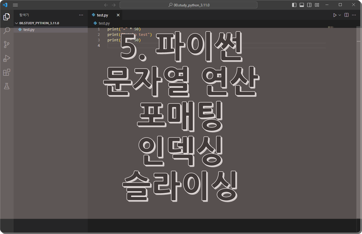 5. 파이썬 문자열 연산, 포매팅, 인덱싱, 슬라이싱 2026년 03월 22일2023년 03월 26일 문자열 연산 숫자형 이 아닌 문자열의 경우에도 연산을 할수 있습니다.문자열의 연산은 문자열을 더해서 연결하거나 문자열을 곱해서 표현하는 방식입니다. 문자열 더해서 … Read more